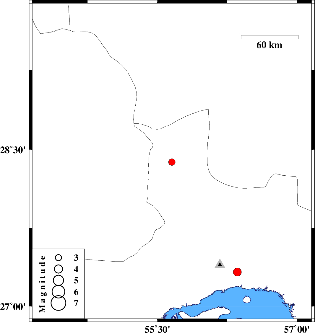 | 2023/01/01 | 14:36:23.1 | 18:06:23.1 | 27.33 | 56.359 | 12 | ML:4 | Hormozgan Province, 18 km North of Bandar-e abbas |