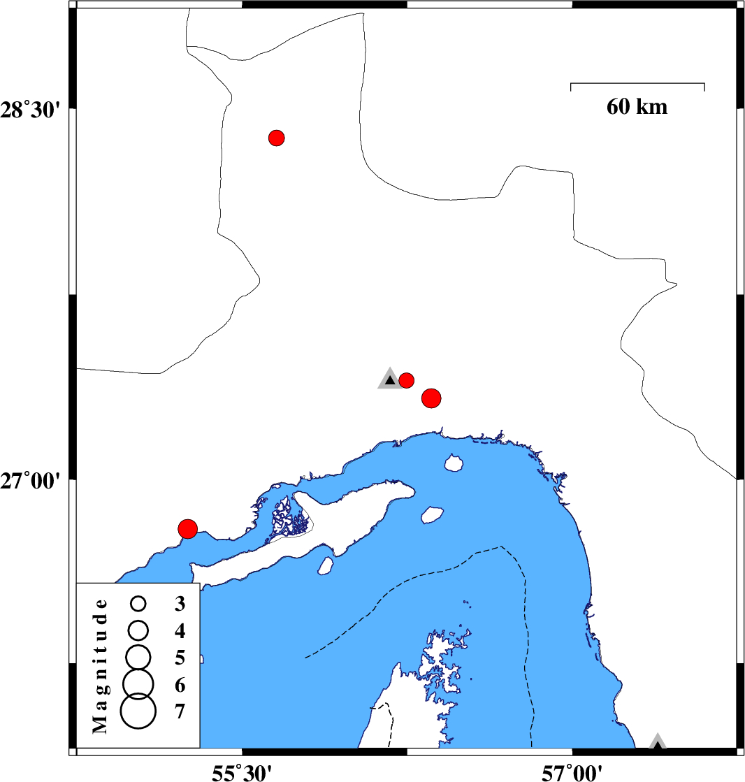 | 2023/01/04 | 16:19:58.4 | 19:49:58.4 | 26.798 | 55.253 | 12 | ML:4 | Hormozgan Province, 50 km North-East of Bandar-e lengeh | ||