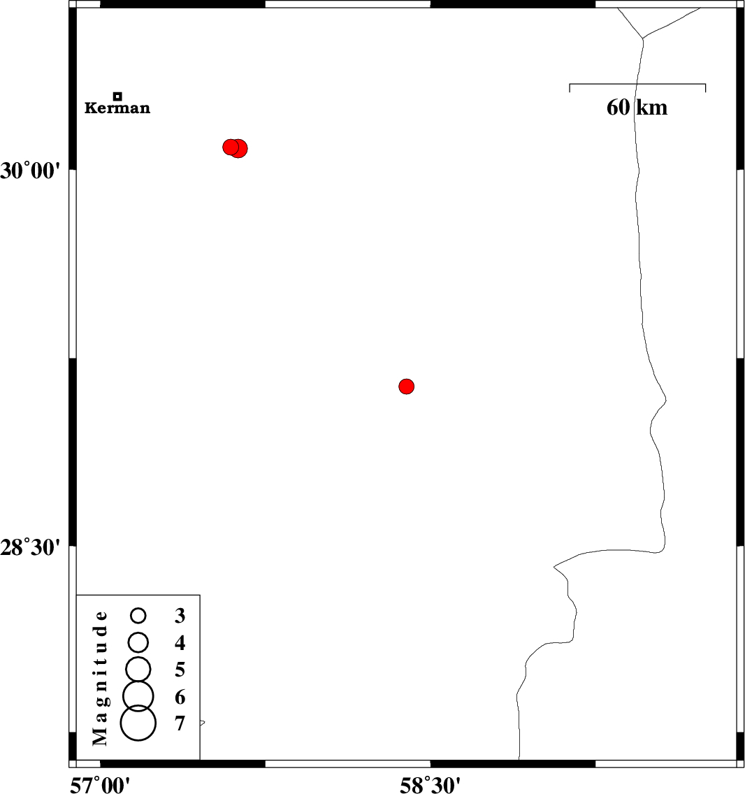 | 2022/12/28 | 09:06:15.0 | 12:36:15.0 | 30.088 | 57.593 | 10 | ML:3.2 | Kerman Province, 54 km South-East of Kerman | ||