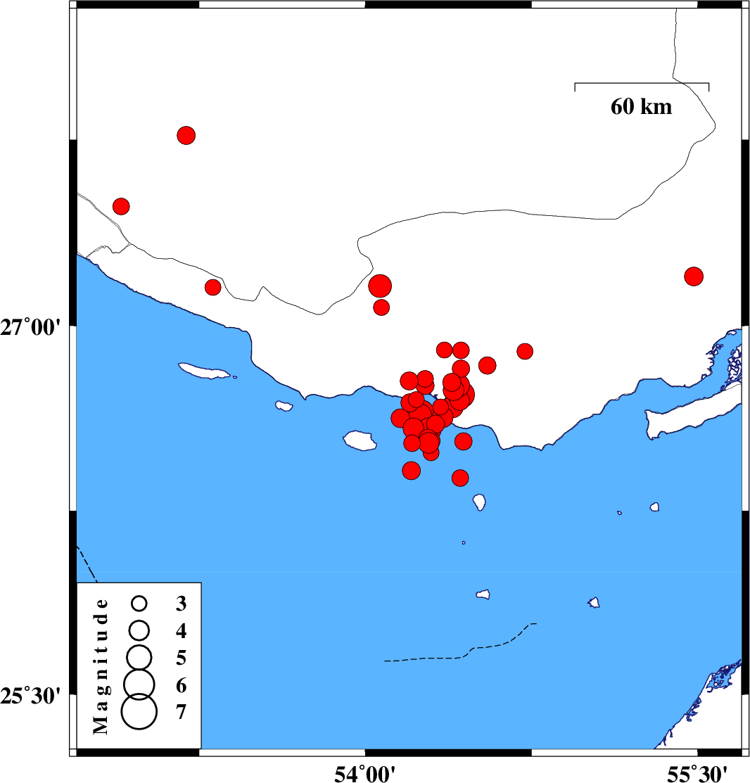 2022/06/15 19:53:54.8 00:23:54.8 26.68954.20212 ML:3.6 Persian Gulf, 59 km South-West of Bastak