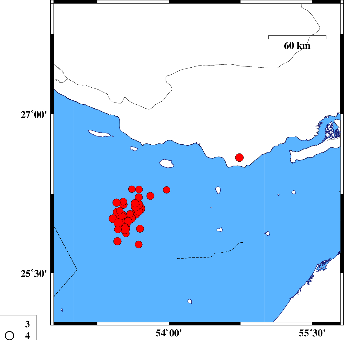 2022/06/15 09:37:45.2 14:07:45.2 26.62654.15912 ML:3.8 Persian Gulf, 67 km South-West of Bastak