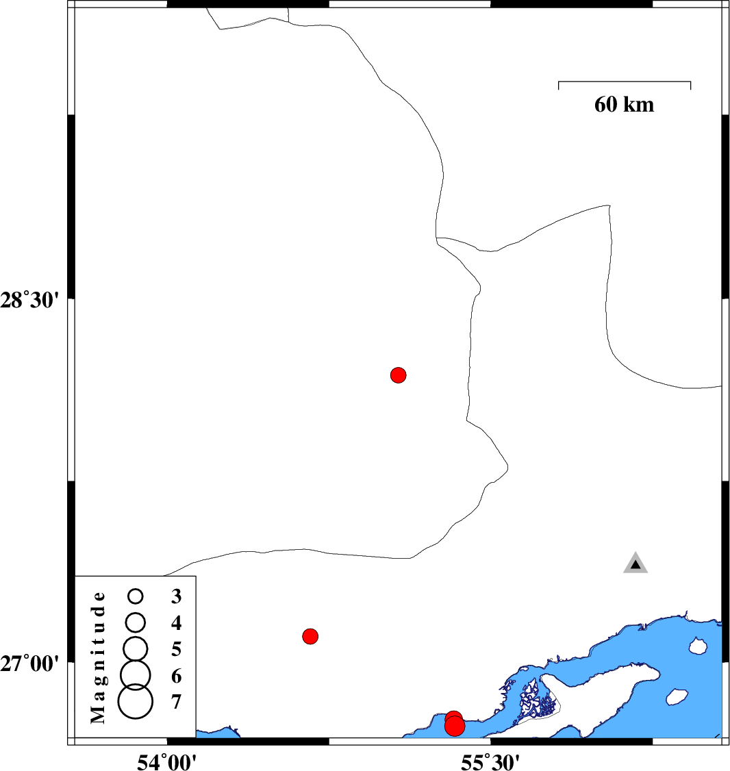 | 2023/02/07 | 02:30:57.5 | 06:00:57.5 | 26.734 | 55.333 | 12 | ML:4.2 | Persian Gulf, 53 km North-East of Bandar-e lengeh | ||