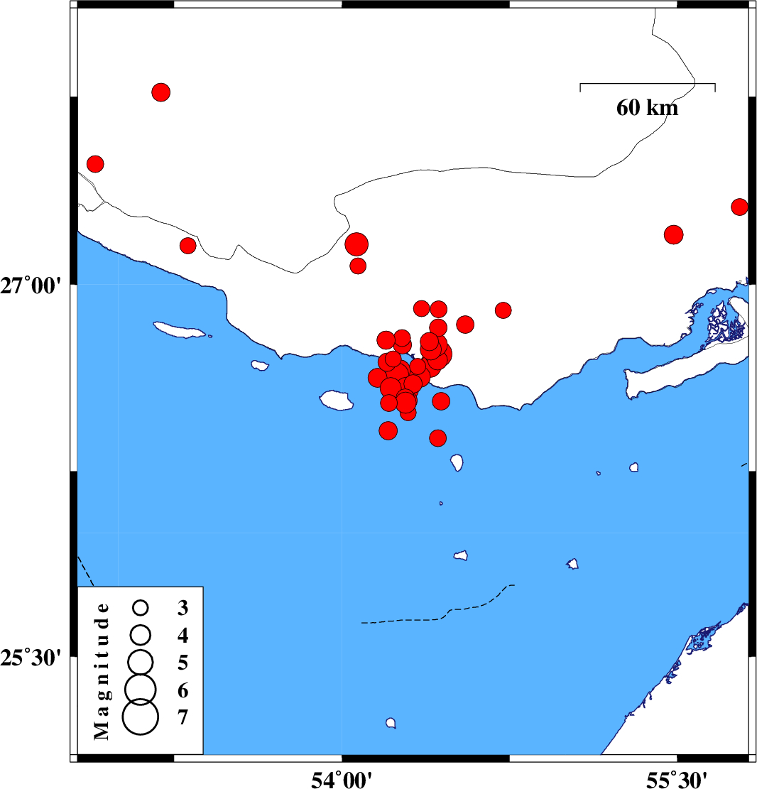 2022/06/15 19:53:54.8 00:23:54.8 26.68954.20212 ML:3.6 Persian Gulf, 59 km South-West of Bastak