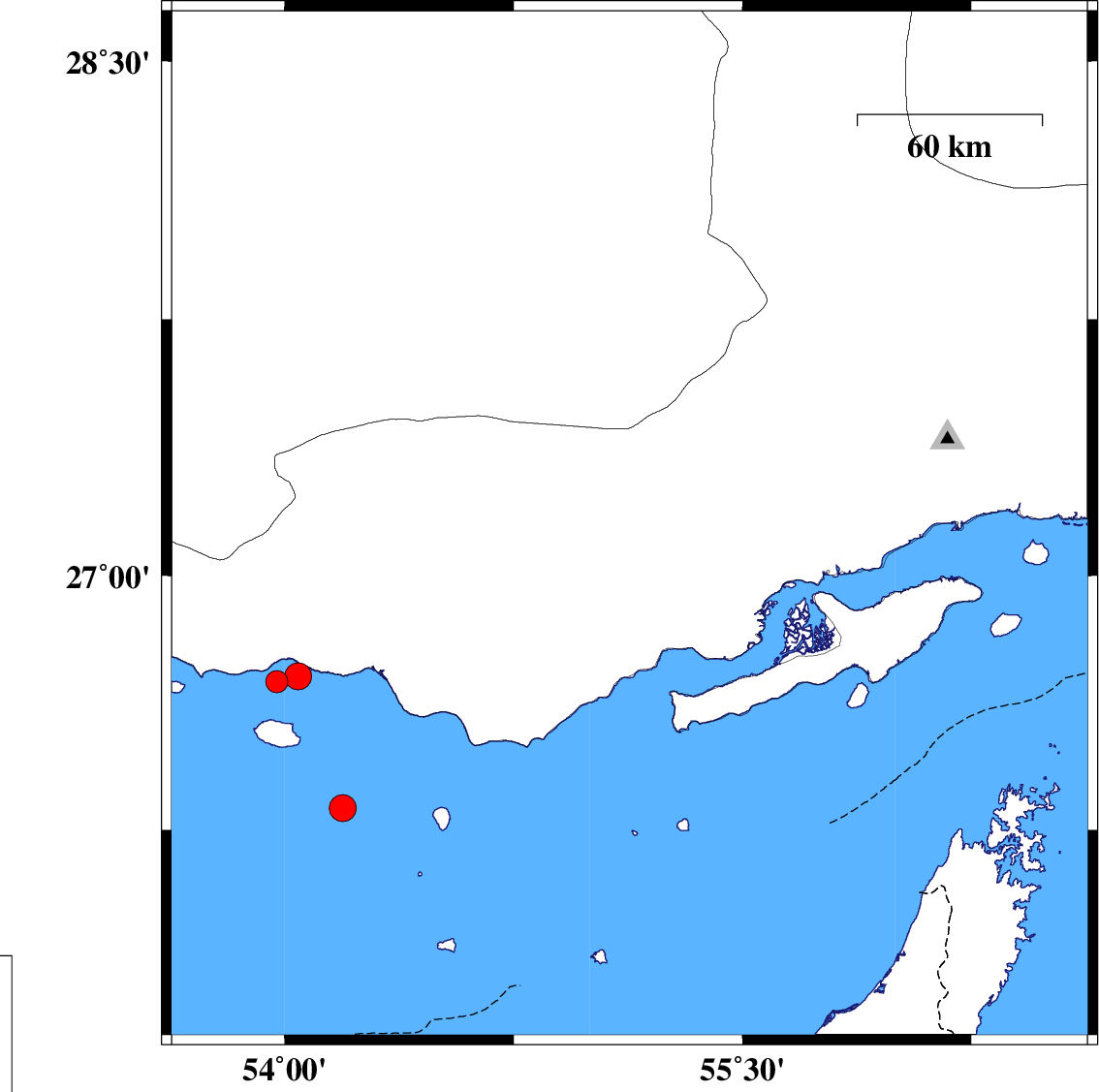 | 2023/03/13 | 09:09:19.4 | 12:39:19.4 | 26.758 | 55.276 | 12 | ML:3.9 | Persian Gulf, 50 km North-East of Bandar-e lengeh |