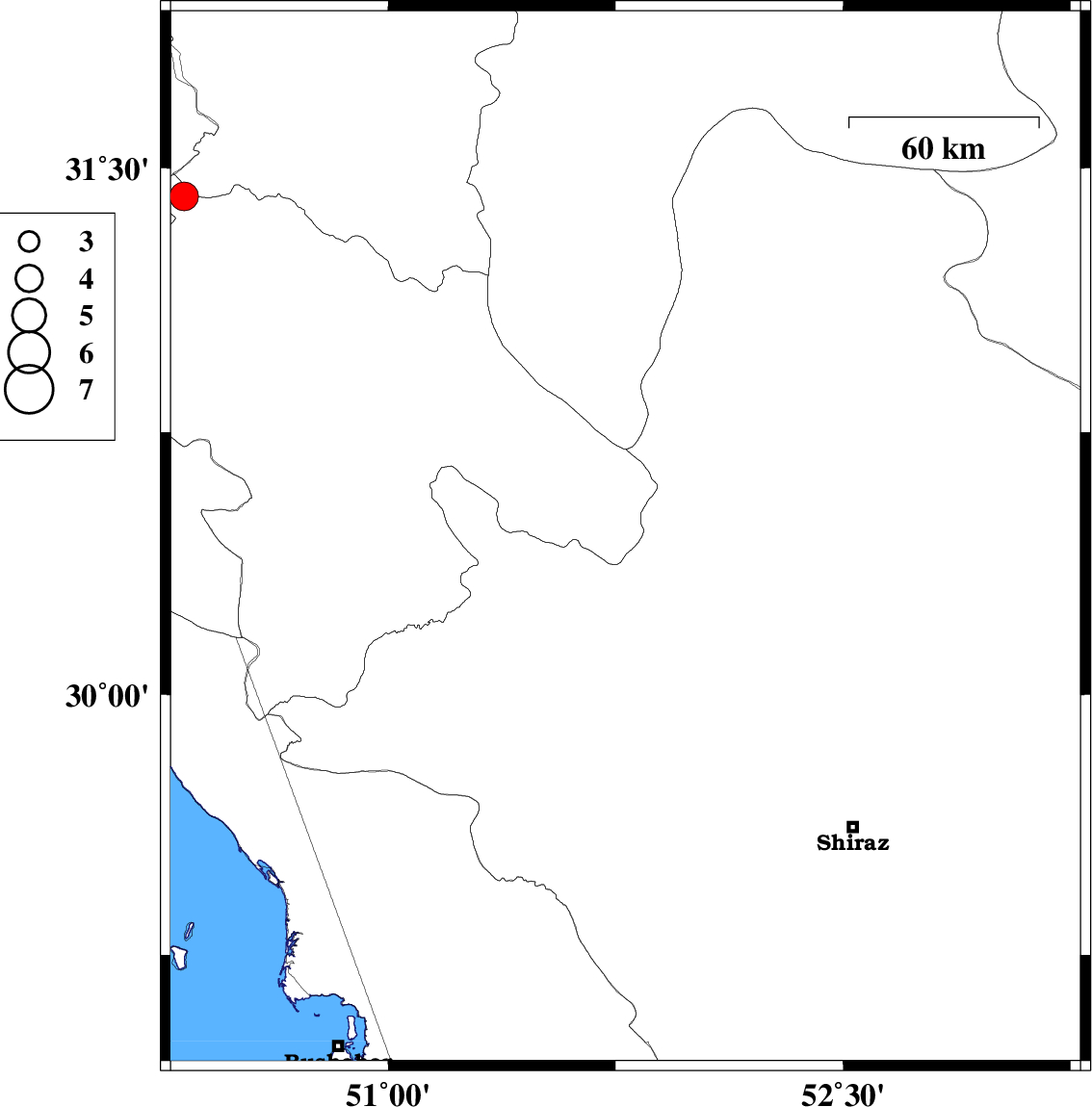 2023/03/19 | 08:28:43.4 | 11:58:43.4 | 29.65 | 51.075 | 10 | ML:4.3 | Bushehr Province, 45 km North-West of Borazjan |