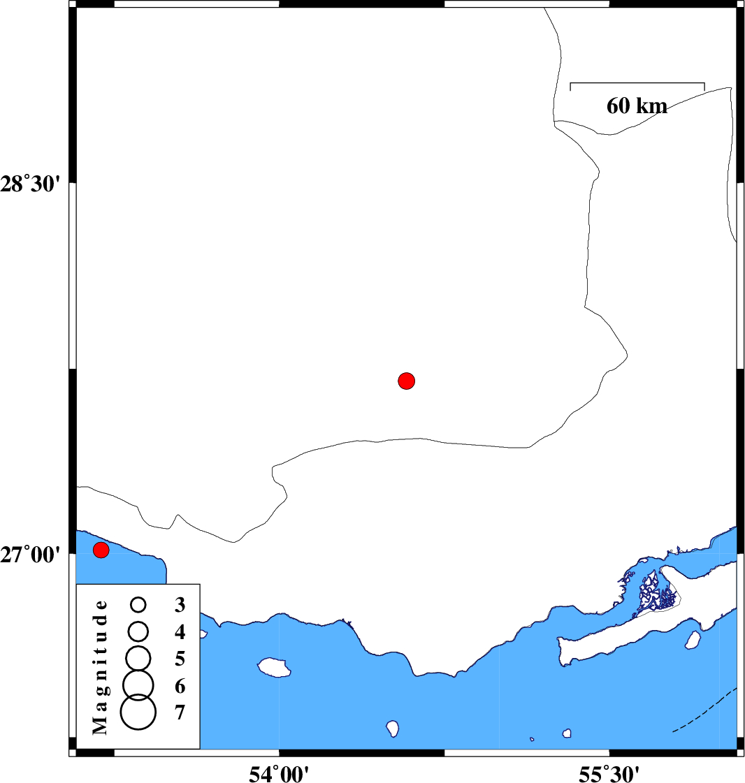 2023/04/11 | 21:04:06.8 | 00:34:06.8 | 27.014 | 53.189 | 12 | ML:3.3 | Persian Gulf, 36 km South of Lamerd |