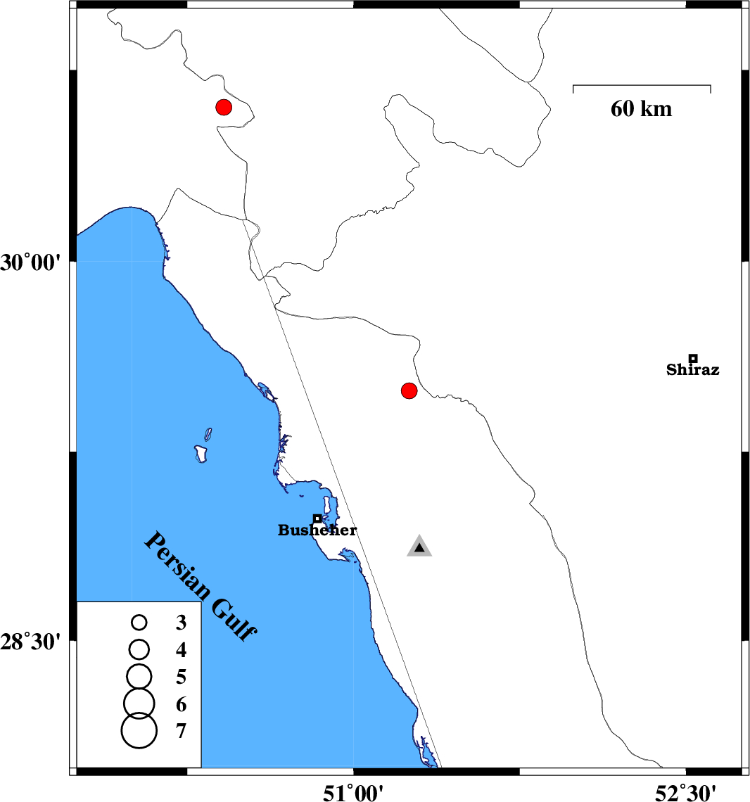 2023/04/21 | 12:05:07.0 | 15:35:07.0 | 29.491 | 51.251 | 8 | ML:3.3 | Bushehr Province, 26 km North of Borazjan | ||