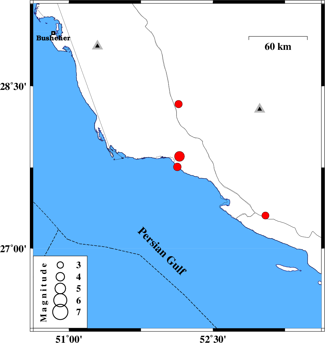 | 2021/05/20 | 06:21:20.1 | 10:51:20.1 | 27.755 | 52.129 | 18 | ML:3.7 | Persian Gulf, 10 km of Bandar-e kangan | ||