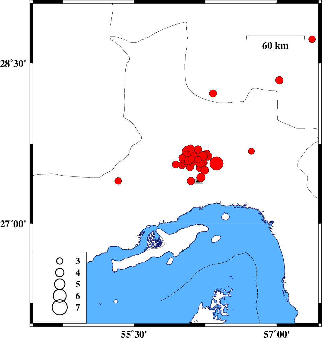 2021/11/14 12:07:04.0 15:37:04.0 27.66856.07514 ML:6.3 Hormozgan Province, 58 km North-West of Bandar-e abbas