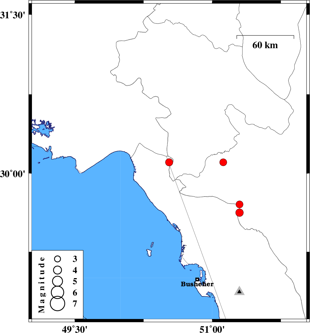 | 2023/06/05 | 09:58:49.5 | 13:28:49.5 | 29.625 | 51.299 | 16 | ML:3.8 | Fars Province, 34 km -West of Kazerun |