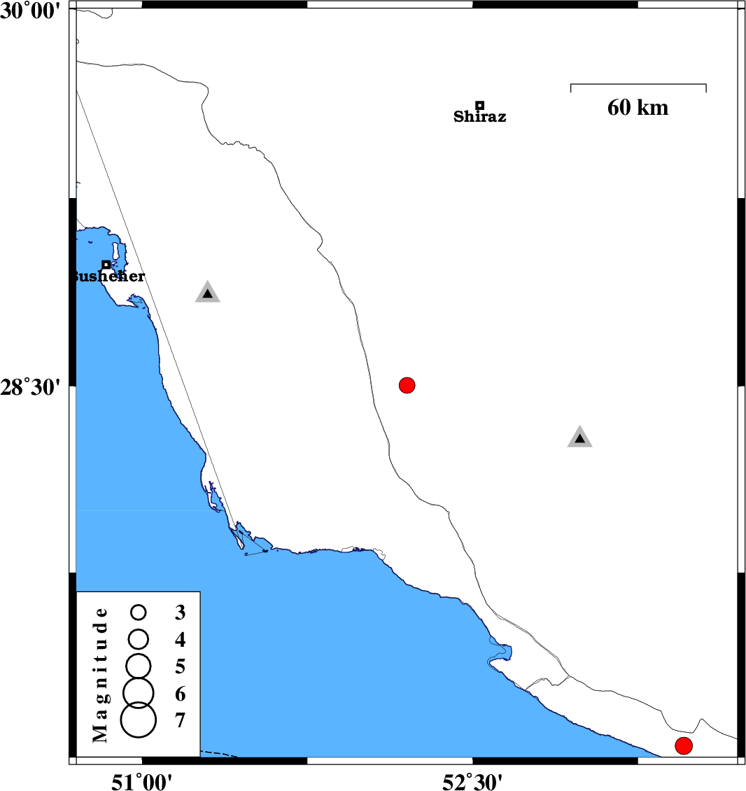 2023/07/29 | 08:32:40.1 | 12:02:40.1 | 28.503 | 52.202 | 12 | ML:3.2 | Fars Province, 42 km South-East of Farashband | ||