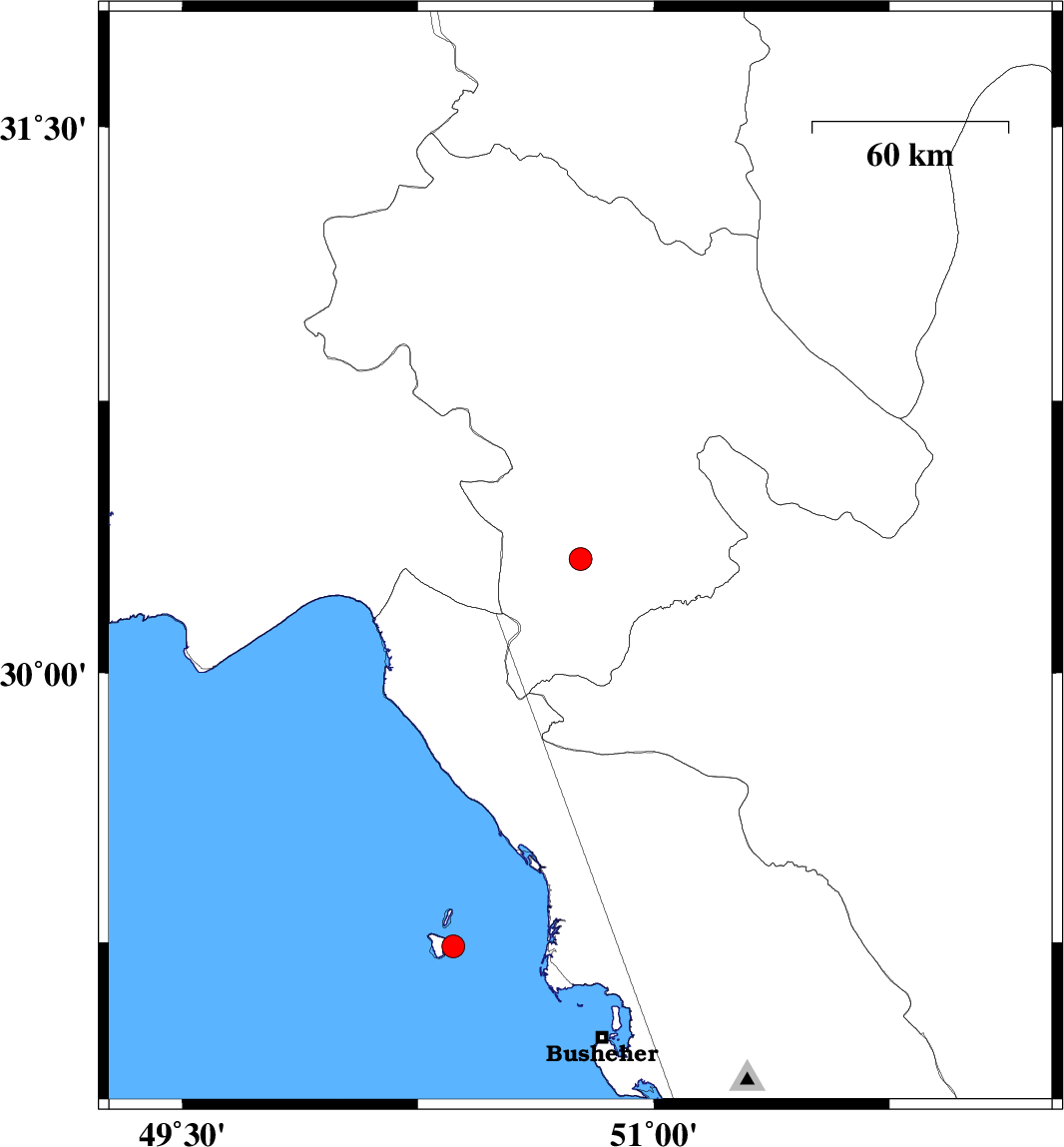 2023/08/02 | 14:52:46.7 | 18:22:46.7 | 29.239 | 50.363 | 12 | ML:3.3 | Persian Gulf, 40 km South-West of Bandar-e genaveh |