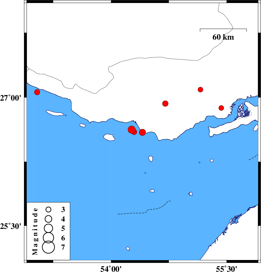 Persian Gulf, 55 km -West of Bandar-e lengeh | |