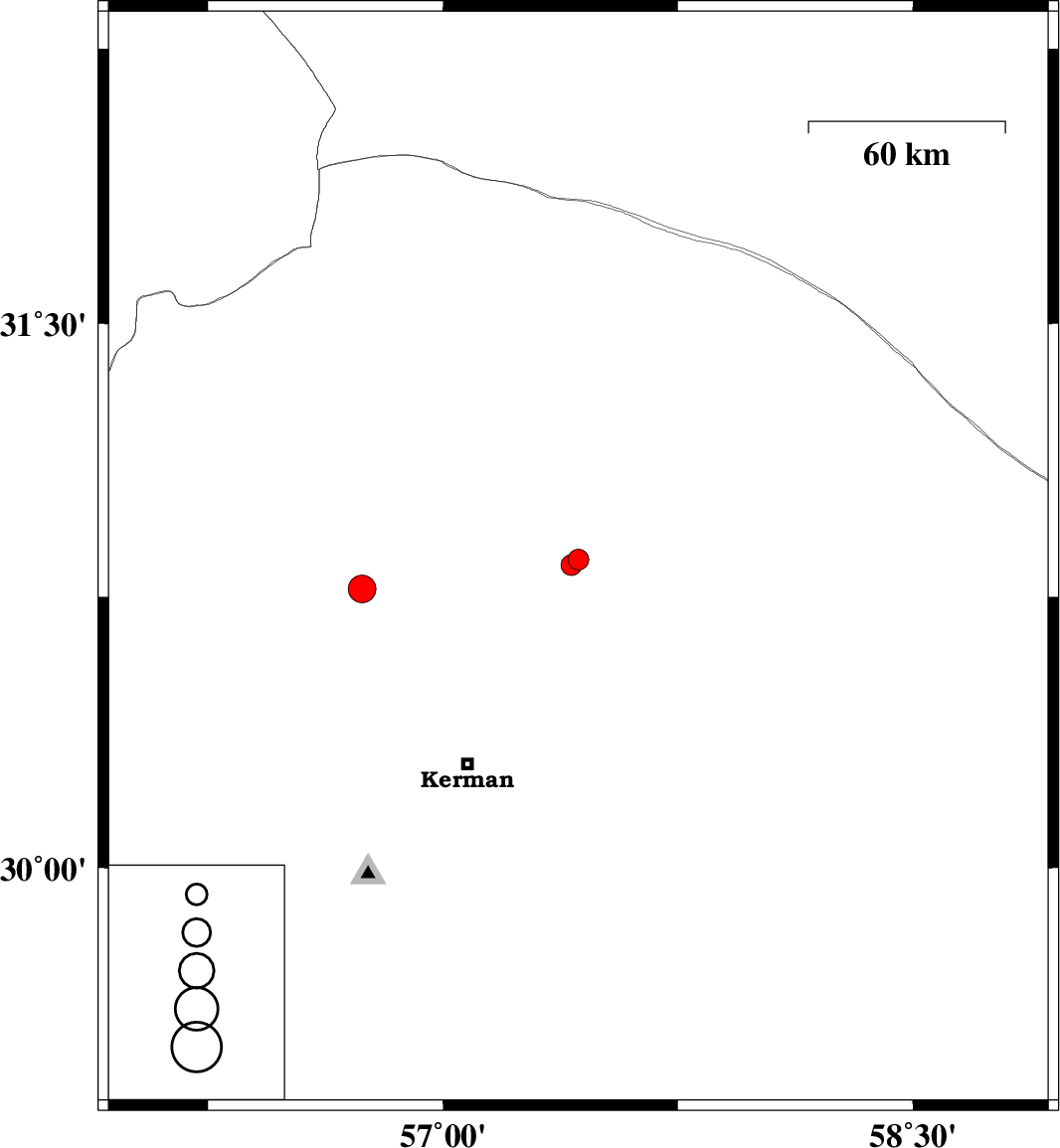 2023/10/16 | 02:33:10.8 | 06:03:10.8 | 30.852 | 57.432 | 12 | ML:3 | Kerman Province, 83 km -East of Zarand | ||