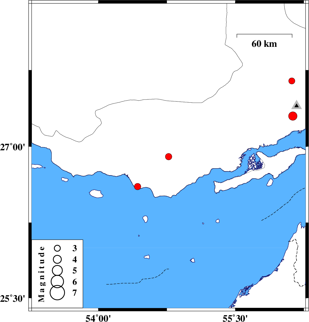 2023/10/25 | 06:04:36.1 | 09:34:36.1 | 26.606 | 54.43 | 12 | ML:3.3 | Hormozgan Province, 43 km -West of Bandar-e lengeh | ||