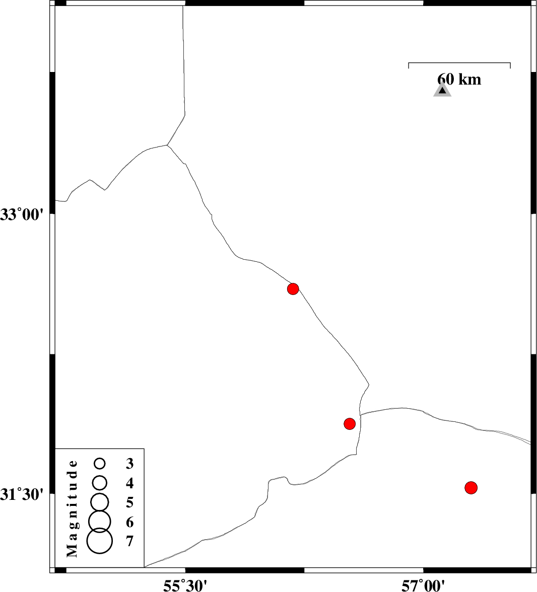 2023/11/08 | 10:35:52.6 | 14:05:52.6 | 32.599 | 56.178 | 12 | ML:3.3 | Yazd Province, 131 km South-West of Tabas | ||