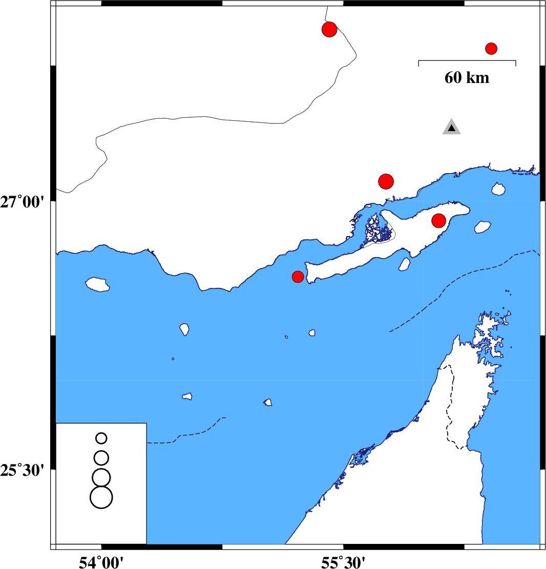 Persian Gulf, 37 km -East of Bandar-e lengeh | |