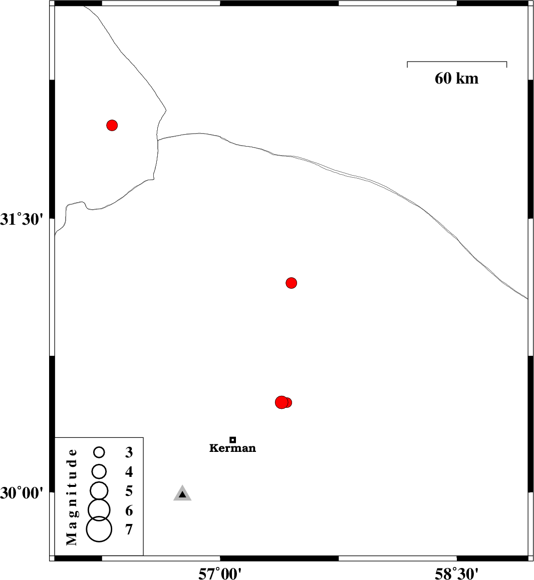 2023/11/29 | 03:11:03.8 | 06:41:03.8 | 30.495 | 57.389 | 12 | ML:3.6 | Kerman Province, 38 km North-East of Kerman | ||