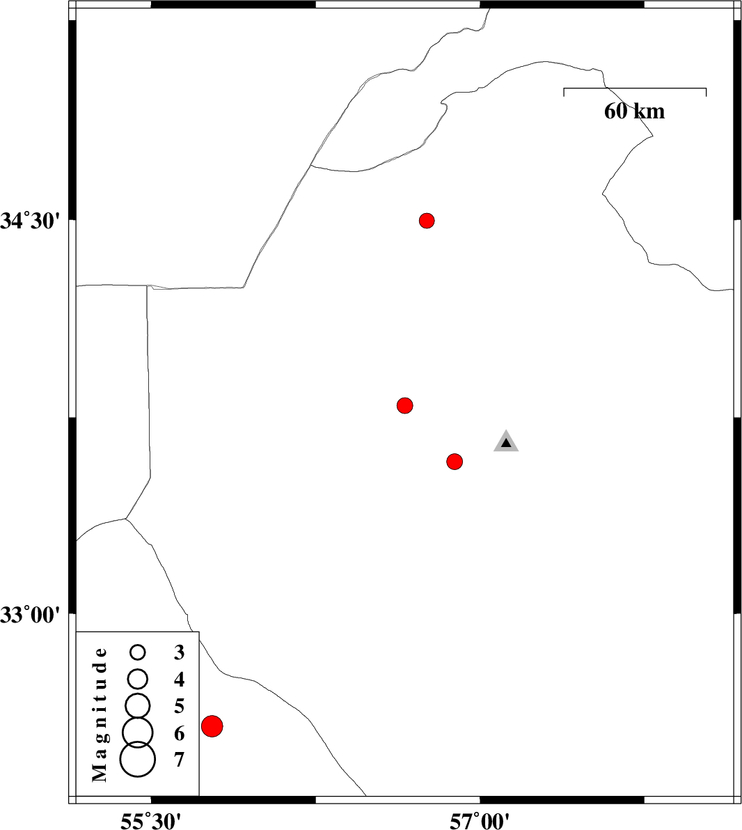 2024/01/08 | 04:02:25.5 | 07:32:25.5 | 33.582 | 56.884 | 10 | ML:3.2 | Yazd Province, 4 km of Tabas | ||