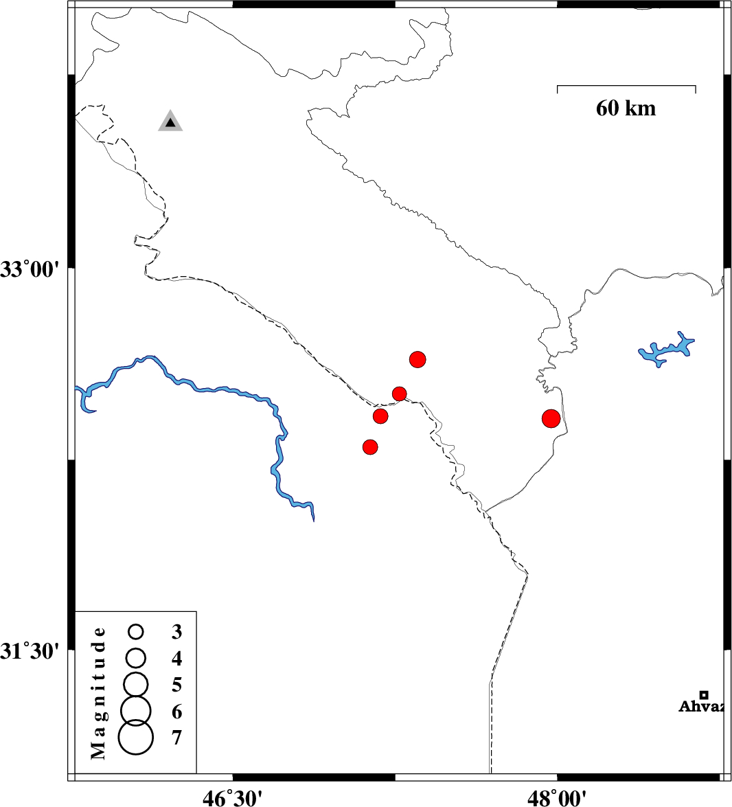 | 2021/03/08 | 03:24:19.0 | 06:54:19.0 | 32.42 | 47.182 | 19 | ML:3.1 | Iraq, 31 km South of Dehloran | ||