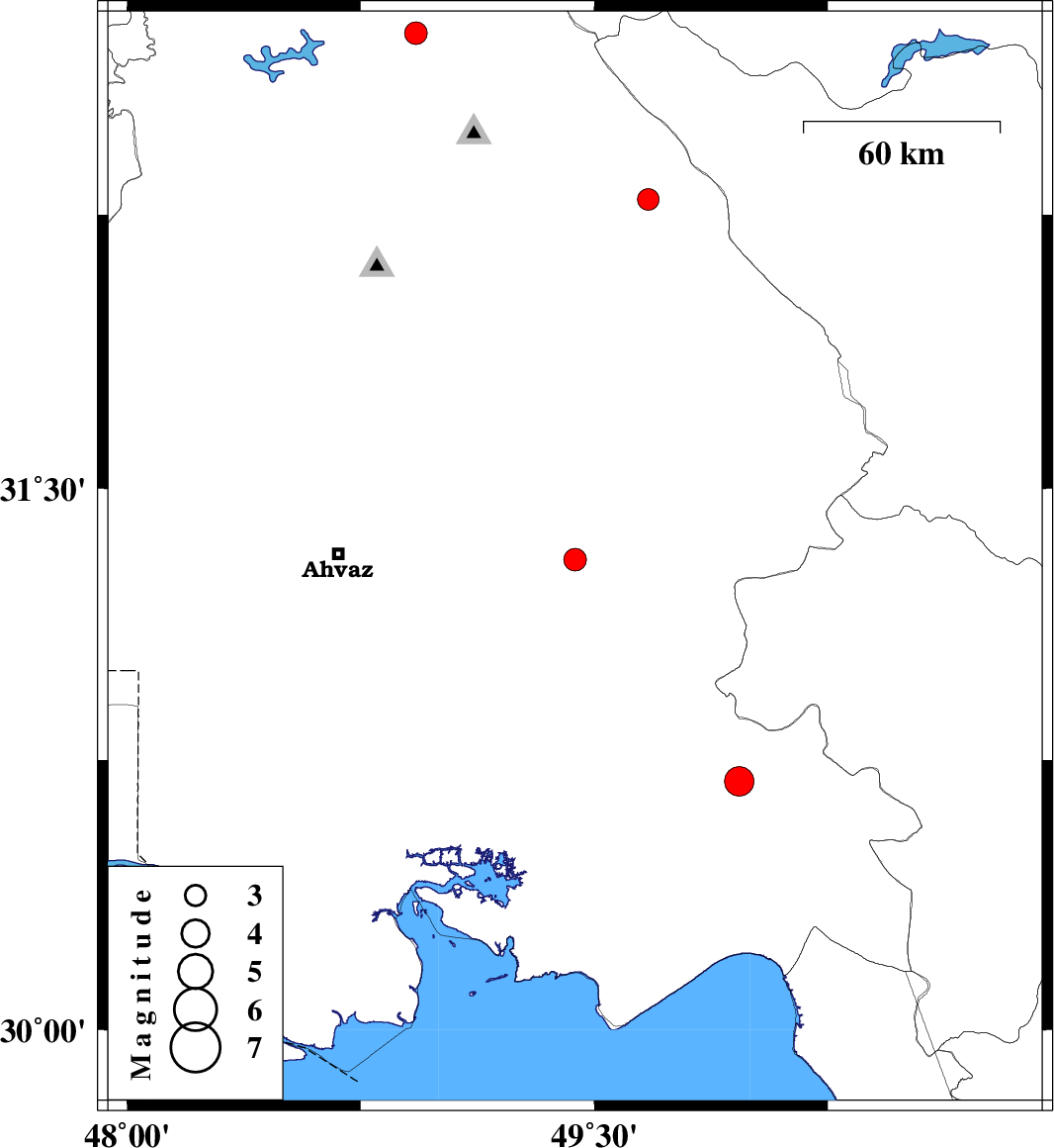 | 2024/01/29 | 08:27:26.0 | 11:57:26.0 | 30.692 | 49.965 | 23 | ML:4.2 | Khoozestan Province, 26 km -East of Omidiyeh |