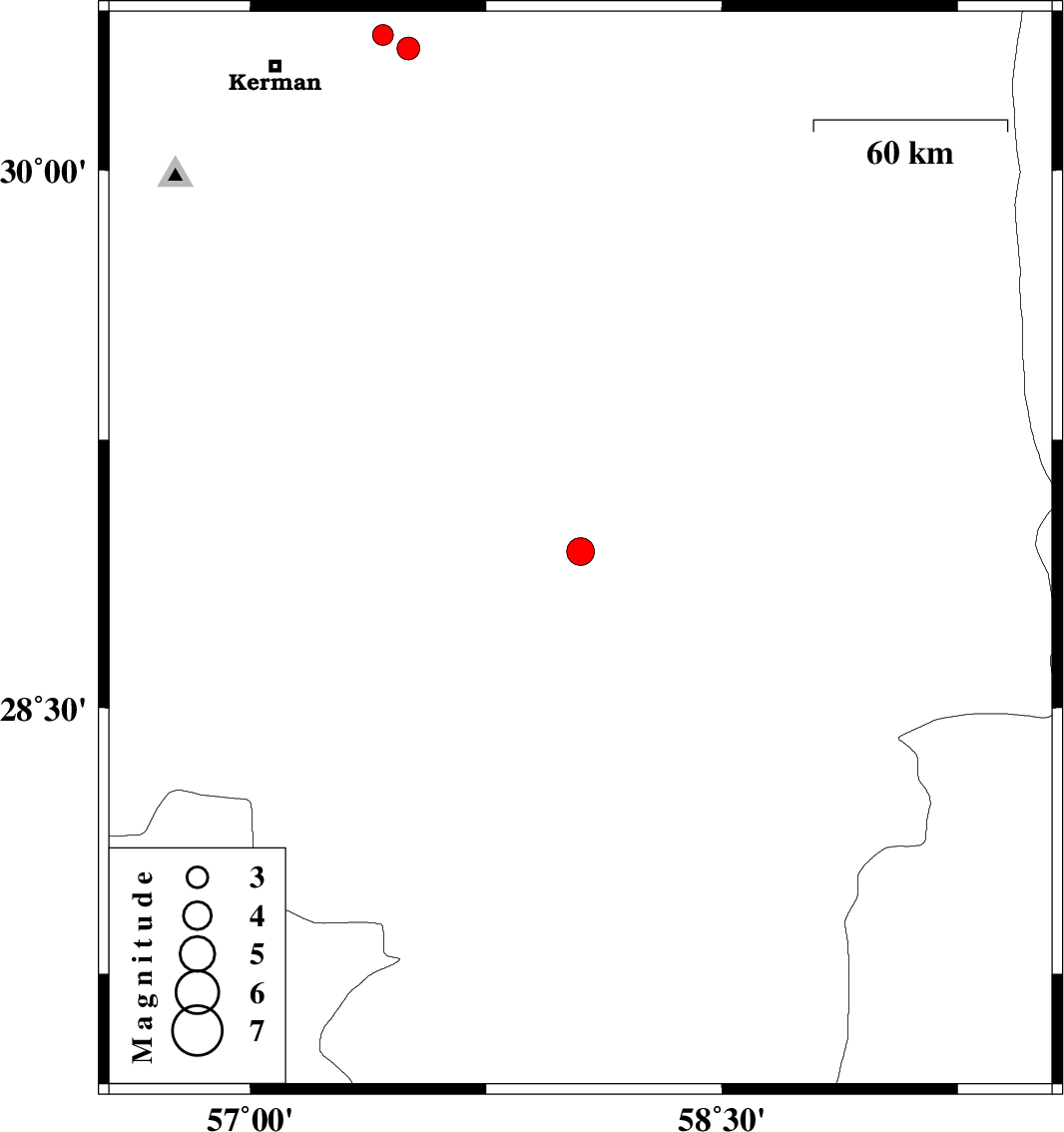 | 2024/03/07 | 17:27:03.9 | 20:57:03.9 | 28.939 | 58.05 | 8 | ML:3.9 | Kerman Province, 35 km South-West of Bam | ||