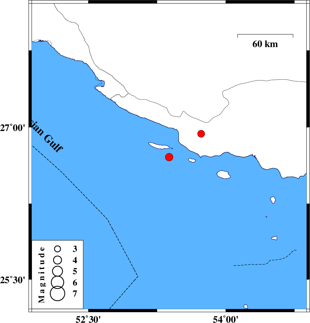 | 2024/03/06 | 15:46:49.0 | 19:16:49.0 | 26.707 | 53.382 | 12 | ML:3.8 | Persian Gulf, 73 km South-East of Lamerd | ||