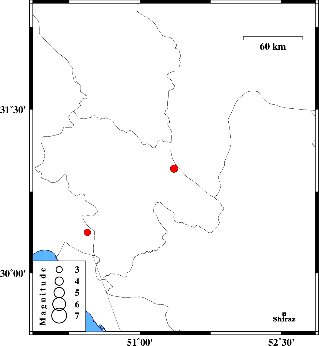 | 2024/03/12 | 23:23:38.6 | 02:53:38.6 | 30.96 | 51.362 | 12 | ML:3.6 | Kohkiluieh va boyerahmad Province, 14 km of Sisakht | ||