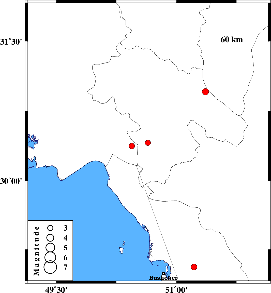 | 2024/03/03 | 15:03:57.8 | 18:33:57.8 | 29.059 | 51.22 | 12 | ML:3.4 | Bushehr Province, 23 km South of Borazjan |
