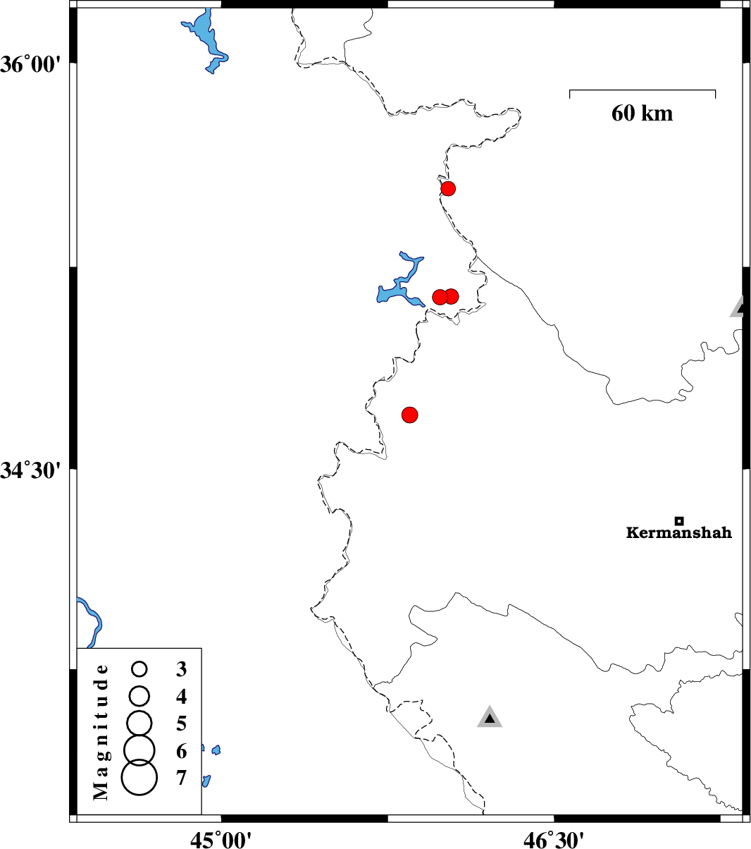 | 2024/04/04 | 14:49:51.2 | 18:19:51.2 | 34.701 | 45.849 | 12 | ML:3.2 | Kermanshah Province, 7 km of Tazehabad | ||
