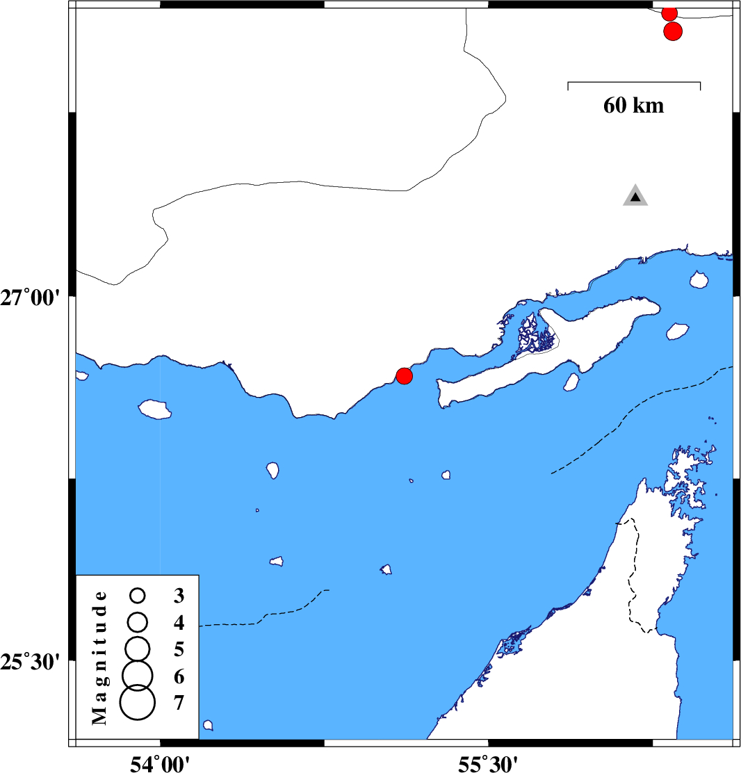 | 2024/04/20 | 00:08:06.0 | 03:38:06.0 | 26.672 | 55.115 | 17 | ML:3.4 | Persian Gulf, 31 km North-East of Bandar-e lengeh | ||