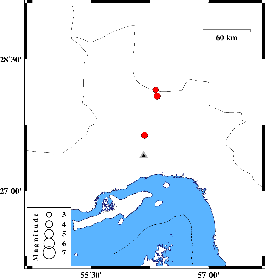 | 2024/04/20 | 00:08:06.0 | 03:38:06.0 | 26.672 | 55.115 | 17 | ML:3.4 | Persian Gulf, 31 km North-East of Bandar-e lengeh | ||