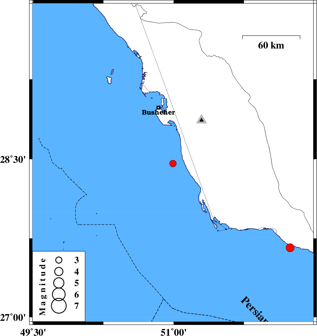 2024/04/30 | 04:09:33.7 | 07:39:33.7 | 28.458 | 50.992 | 12 | ML:3.3 | Persian Gulf, 43 km South-West of Khormog | ||