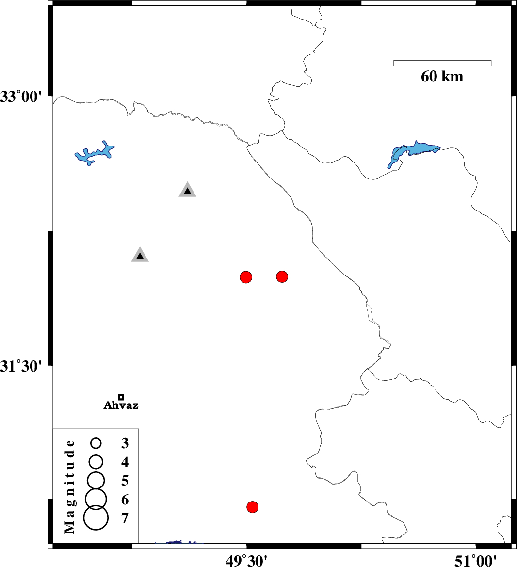 | 2024/05/03 | 01:39:44.4 | 05:09:44.4 | 31.996 | 49.731 | 16 | ML:3.4 | Khoozestan Province, 22 km North-West of Izeh | ||