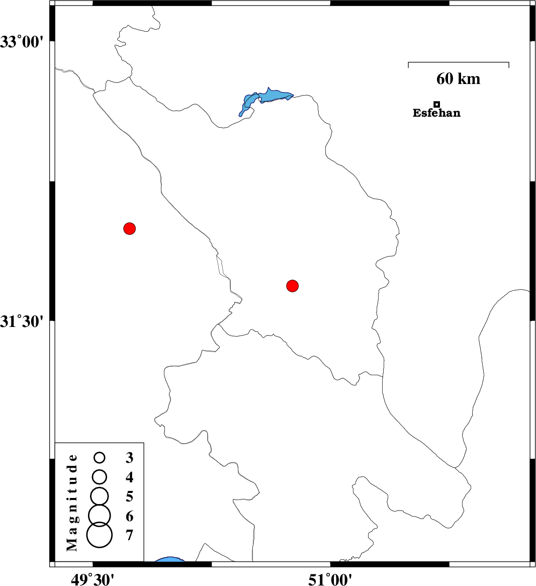 | 2024/05/10 | 20:09:53.5 | 23:39:53.5 | 31.688 | 50.76 | 12 | ML:3.4 | Chaharmahal Bakhtiari Province, 22 km North of Lordegan | ||