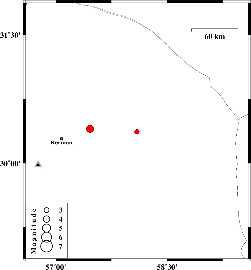 2024/05/01 | 13:34:00.4 | 17:04:00.4 | 30.404 | 57.462 | 12 | ML:4.5 | Kerman Province, 39 km North-East of Kerman |