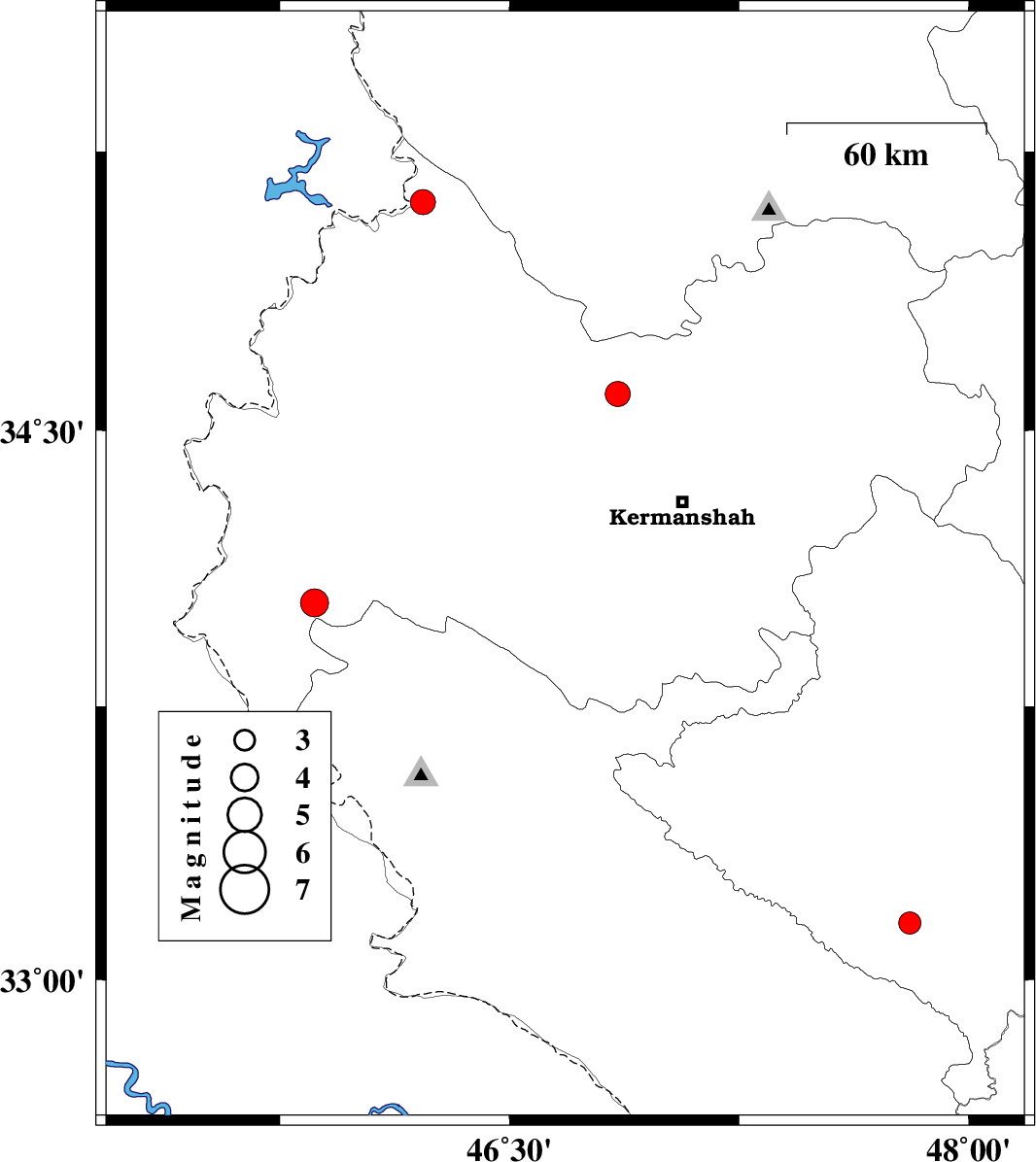 | 2024/05/19 | 00:35:21.1 | 04:05:21.1 | 34.127 | 46.682 | 10 | ML:3.6 | Kermanshah Province, 8 km of Eslam Abad-E-Gharb | ||