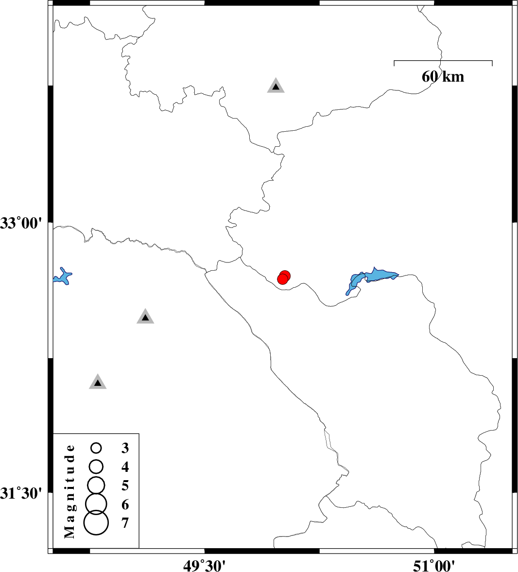 | 2024/06/17 | 22:26:31.2 | 01:56:31.2 | 32.704 | 50.024 | 20 | ML:3.2 | Esfahan Province, 27 km South of Fereydunshahr |
