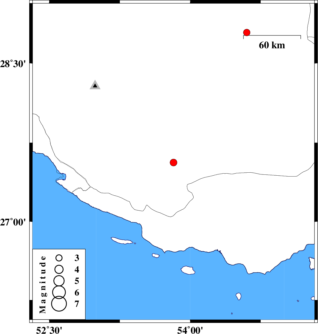 | 2024/06/27 | 17:56:18.8 | 21:26:18.8 | 27.562 | 53.822 | 10 | ML:3.4 | Fars Province, 53 km South-West of Lar | ||