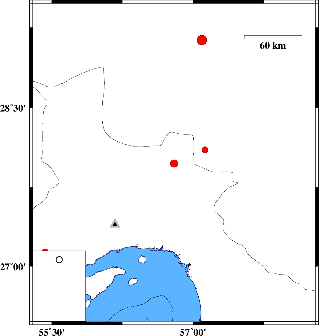 2024/07/17 | 18:59:05.7 | 22:29:05.7 | 28.103 | 57.127 | 12 | ML:3 | Kerman Province, 58 km North-West of Kahnuj | ||