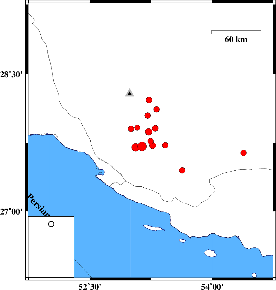 2020/08/25 04:41:20.7 09:11:20.7 27.44853.63212 ML:3.2 Fars Province, 48 km North-East of Lamerd
