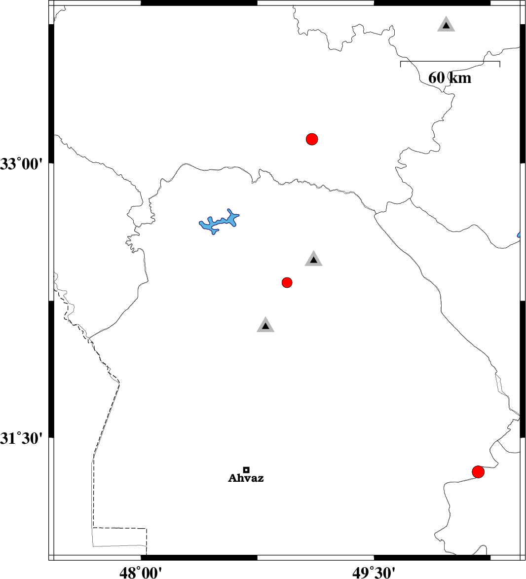| 2020/08/25 | 00:30:50.3 | 05:00:50.3 | 32.35 | 48.94 | 14 | ML:3 | Khoozestan Province, 16 km -West of Lali | ||