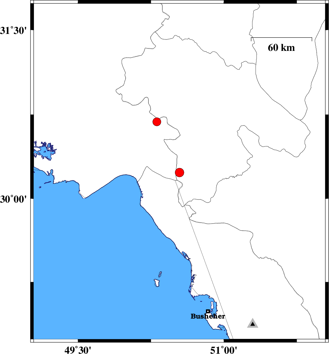 | 2024/09/01 | 13:08:05.7 | 16:38:05.7 | 30.685 | 50.311 | 12 | ML:3.8 | Khoozestan Province, 12 km of Behbahan |
