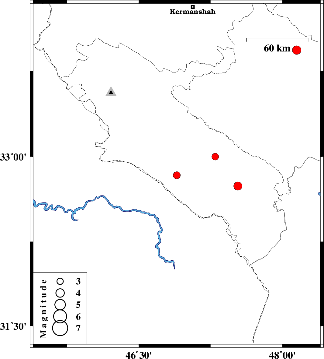 | 2024/10/16 | 04:05:20.8 | 07:35:20.8 | 32.836 | 46.897 | 12 | ML:3.4 | Ilam Province, 37 km North-West of Dehloran | ||
