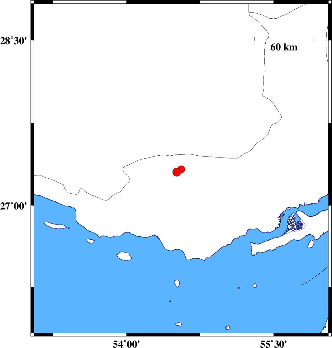 | 2024/10/17 | 21:30:17.1 | 01:00:17.1 | 27.329 | 54.557 | 12 | ML:3.4 | Hormozgan Province, 24 km North-East of Bastak |