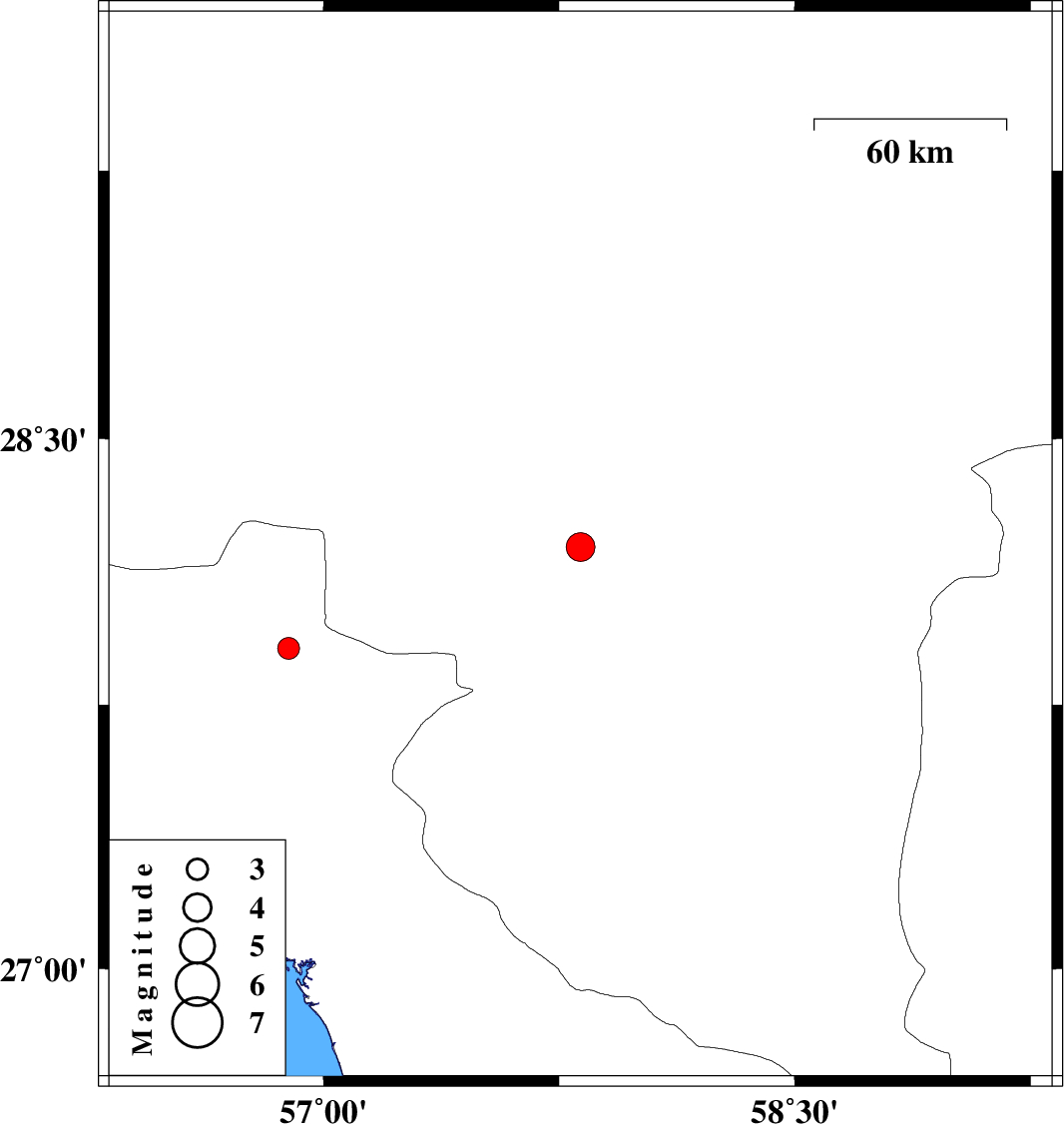 | 2024/11/19 | 12:53:06.4 | 16:23:06.4 | 28.195 | 57.818 | 10 | ML:4.1 | Kerman Province, 30 km North-East of Kahnuj | ||