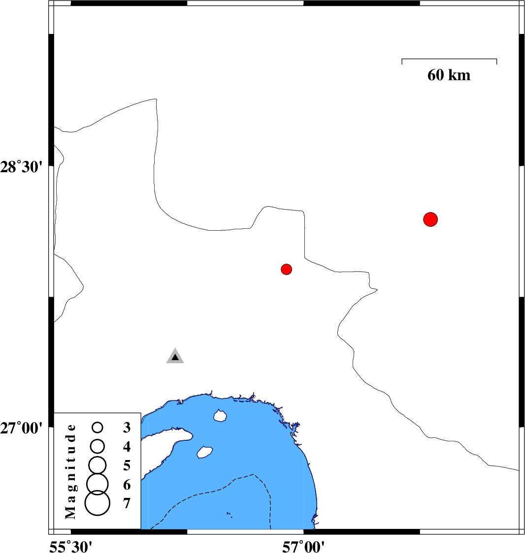 | 2024/11/19 | 12:53:06.4 | 16:23:06.4 | 28.195 | 57.818 | 10 | ML:4.1 | Kerman Province, 30 km North-East of Kahnuj | ||