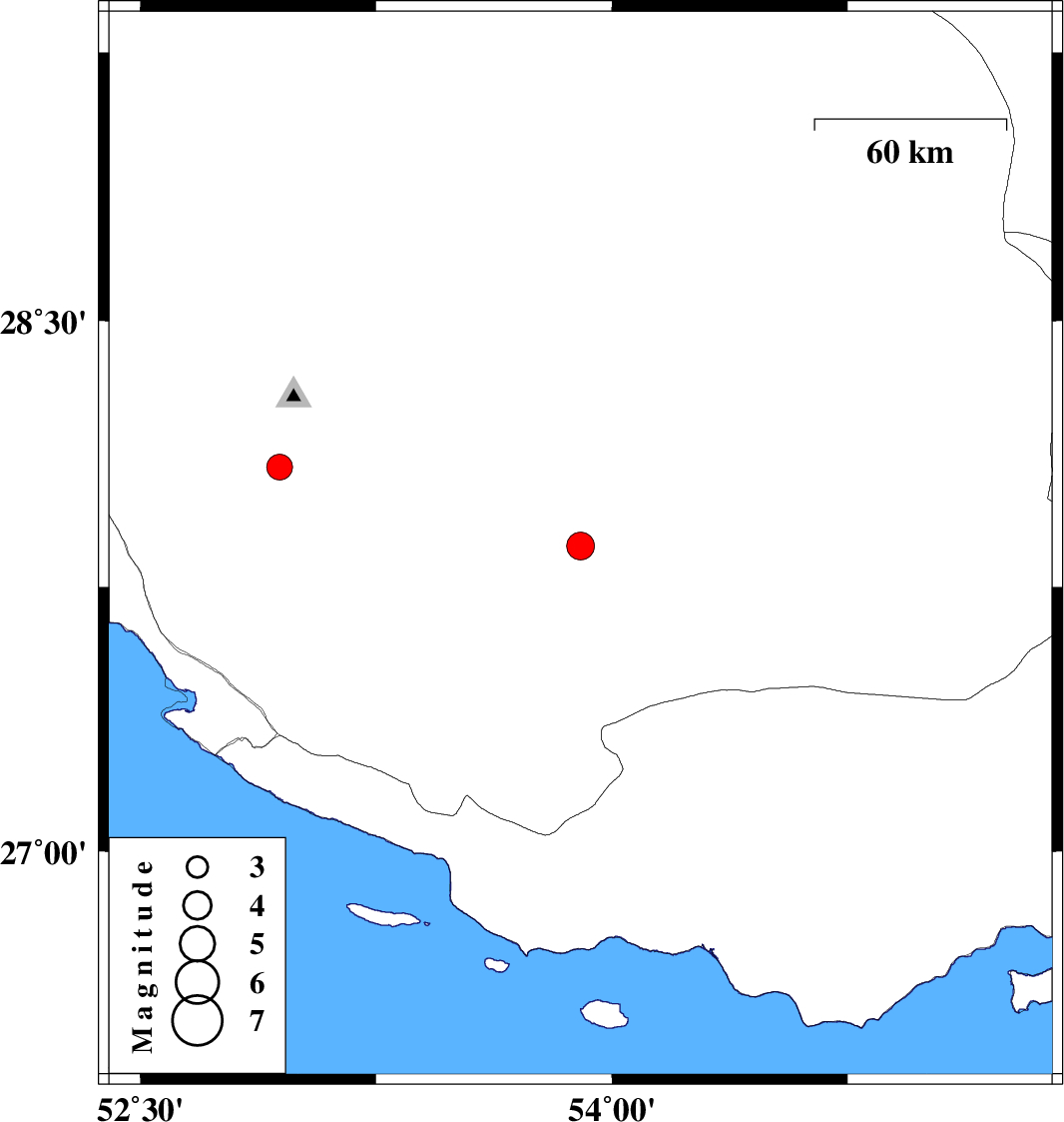 | 2024/11/28 | 05:43:10.5 | 09:13:10.5 | 27.865 | 53.9 | 12 | ML:3.9 | Fars Province, 48 km North-West of Lar | ||