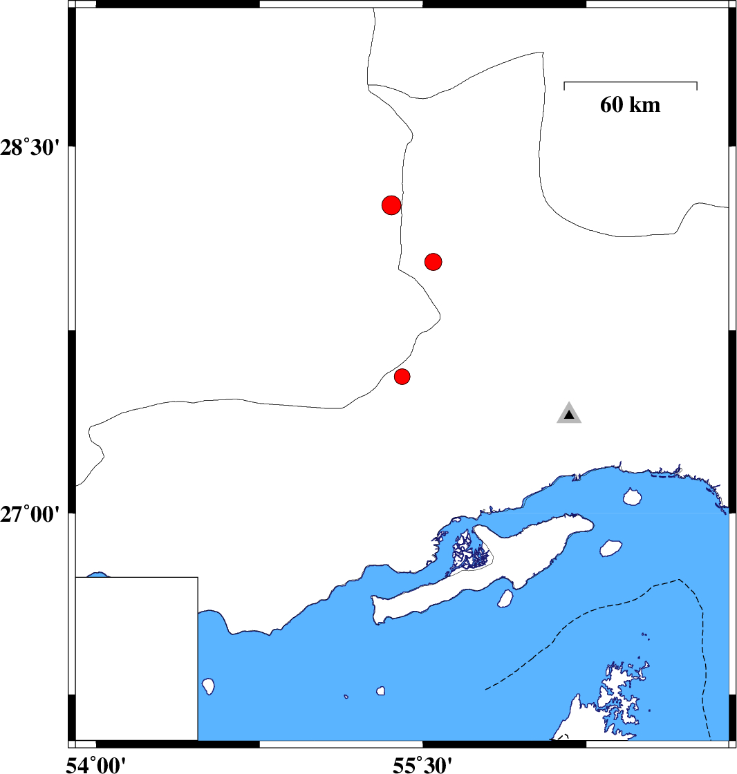 | 2024/12/29 | 12:07:44.6 | 15:37:44.6 | 27.56 | 55.404 | 12 | ML:3.2 | Hormozgan Province, 106 km South-East of Lar | ||