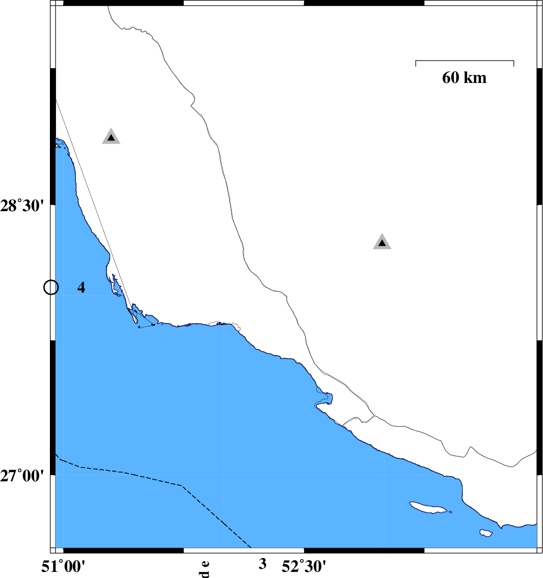 Bushehr Province, 30 km North-West of Bandar-e kangan | |